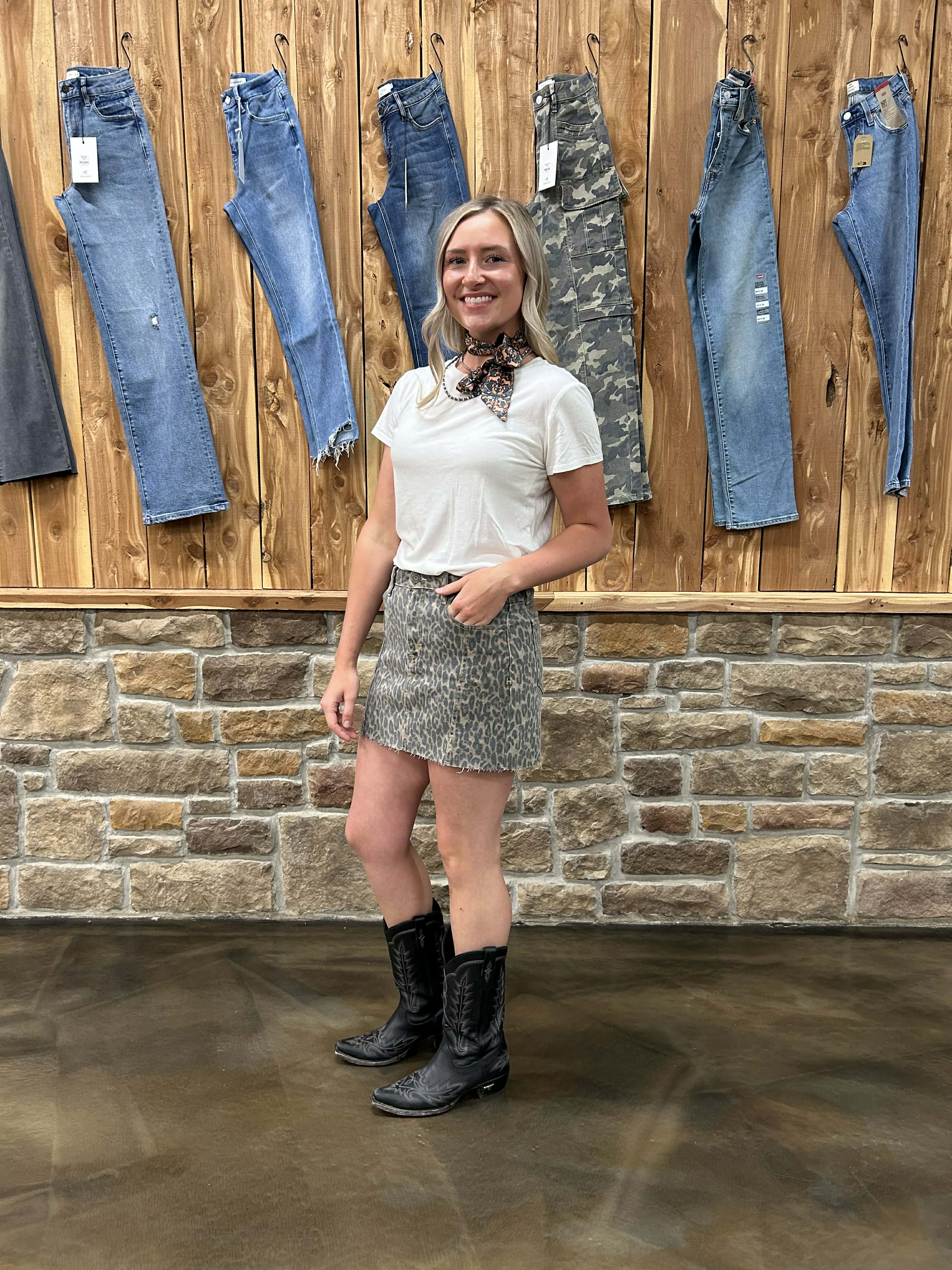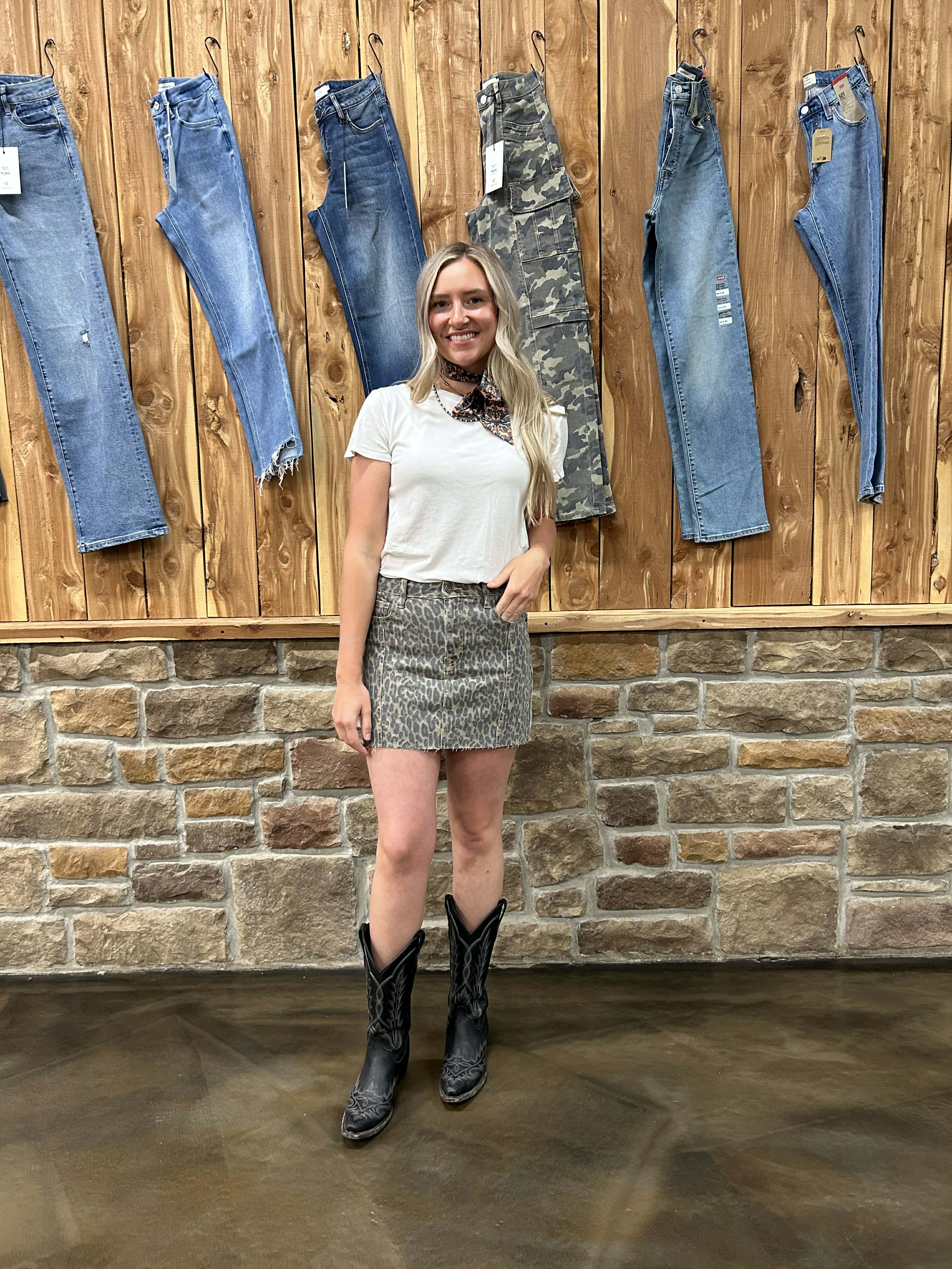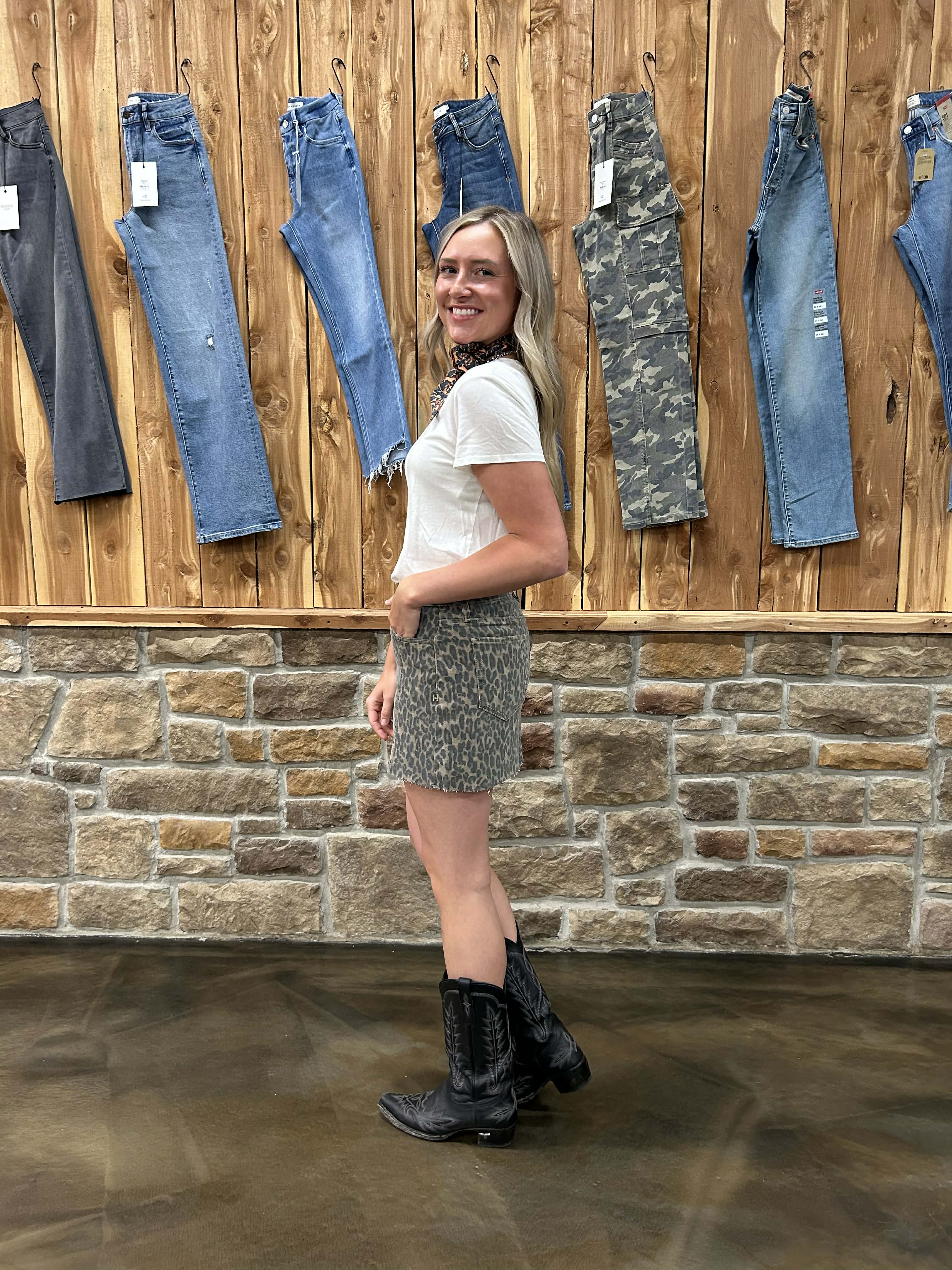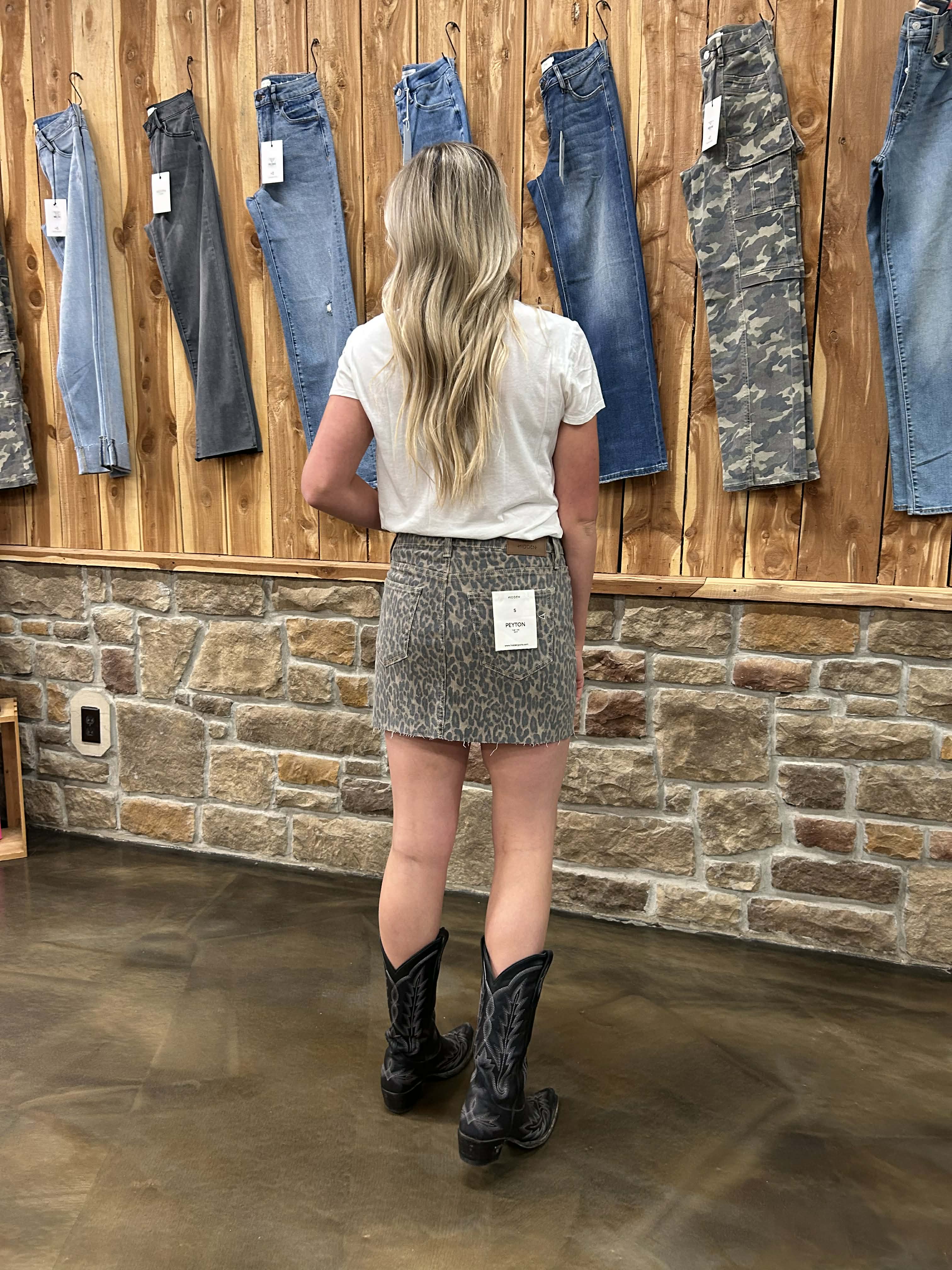 The Peyton skirt features a flattering high rise and eye-catching cheetah print—perfect for pairing with your everyday staples.